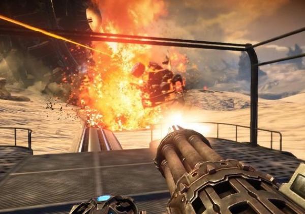 As a first-person shooter, Bulletstorm focuses on combat. There are a variety of fictional firearms available, each with distinct behavior, from a pistol to a cannon that shoots a bolas weighted by grenades. Each weapon has an "alternate fire" mode which uses "charges"; for example, the assault rifle's "charge shot" is a single volley of bullets that destroy almost everything in its path.