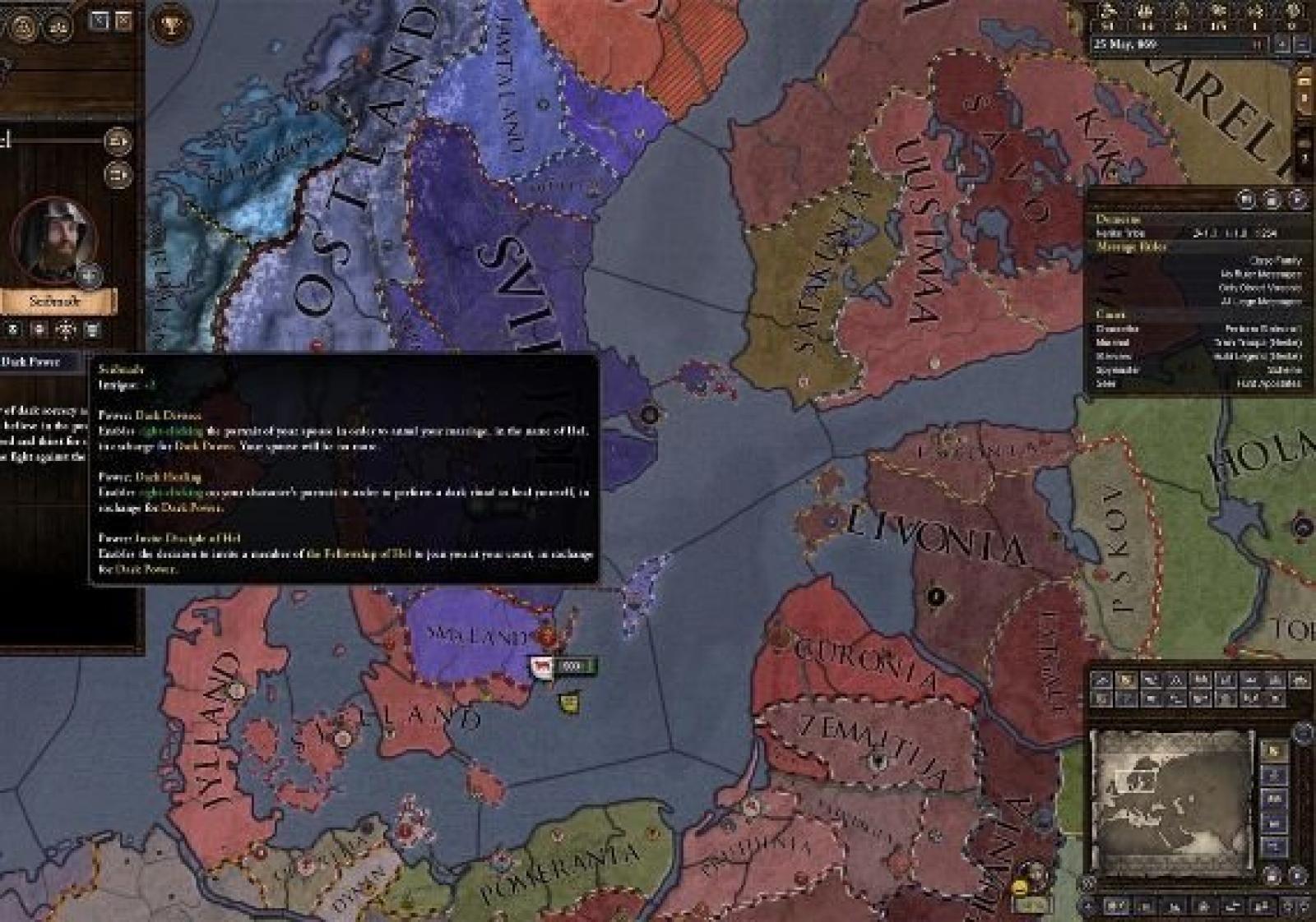- Societies: Characters earn new powers and encounter new events as they climb the ranks of religious societies.