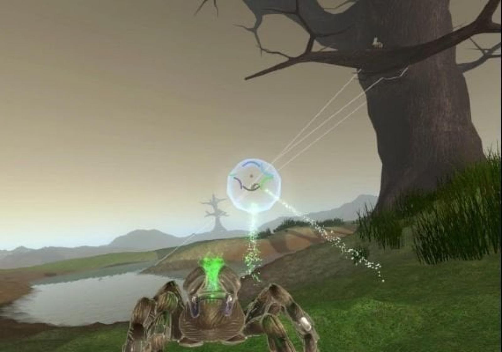 Our spiders can traverse any solid surface at any angle. Want to get an edge by walking on the ceiling, raining death from above? Or how about reenacting nursery rhymes with the closest spout? No problem! Just run up to objects and the spiders will attach themselves, allowing you complete freedom in your ascent.