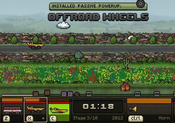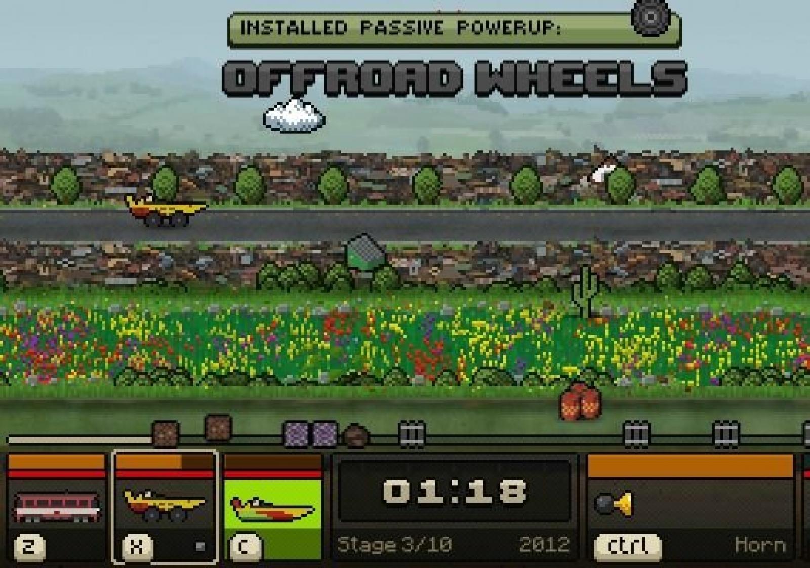 Crunchy crashes, distinctive and colorful pixel art, highly detailed sound and original adaptive music.