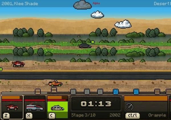 Rocket-propelled motorcycle with caterpillar tracks and machine guns? Yes! There are 40 powerups that can be used on any vehicle, altering their performance and appearance.