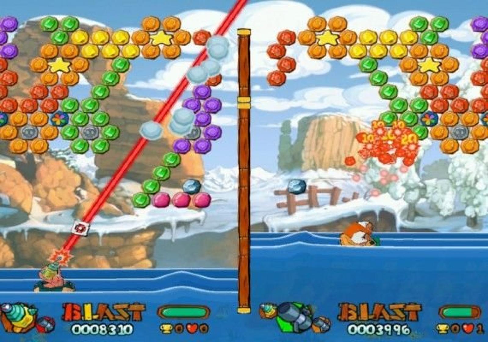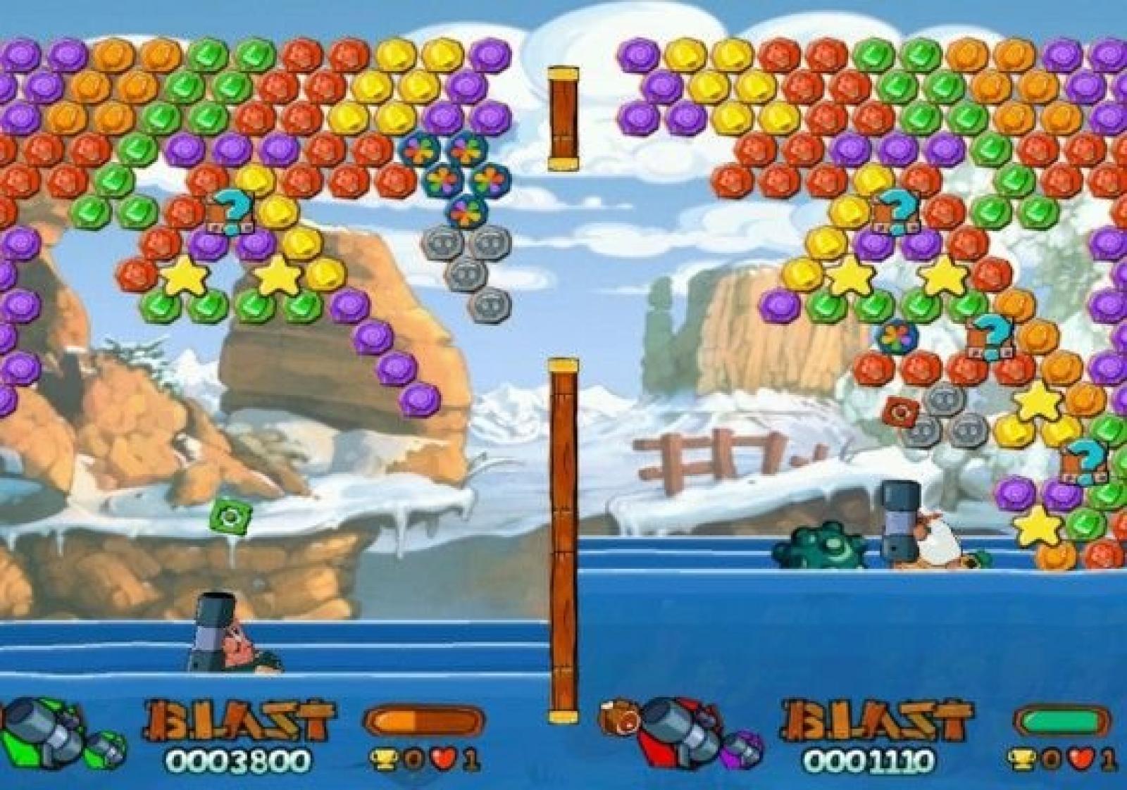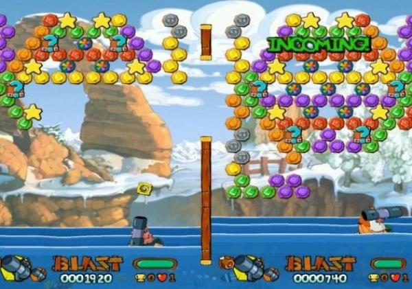 Fall in line for fast, furious fire fights with Worms™ Blast. Your mission: launch your worm marine into hostile waters and blast your way to survival through intense puzzle action! Take the big chunk of puzzle-styled gameplay and slice into 60 fun-sized missions. Sprinkle with a fiendishly challenging puzzle mode, and mix in a tasty tournament mode, not forgetting to include the unlockable hidden features. Spread this mixture over a multi-player head-to-head game guaranteeing fun for yourself and your friends, and allow to simmer! When enjoyment is boiling, add in a generous helping of entertaining characters, boat-based silliness, fog, sea monsters, and falling anvils. Add bazookas, dynamite and unprecedented destruction to taste. This recipe should serve a truly hefty helping of fun!